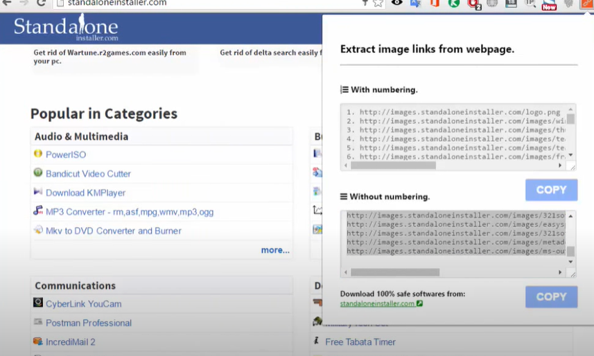 Per estrarre tutti i link delle foto o delle immagini, puoi fare affidamento ad un plugin gratuito come Image Link Grabber. Una volta che hai installato questo plugin, accedi alla pagina web di interesse e premi sul pulsante dell’estensione per iniziare a catturare tutte le URL delle singole immagini. Copia tutte le URL e incollale in un file di testo (.txt) da salvare sul tuo computer.