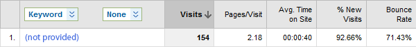 Però se andiamo a visualizzare delle statistiche per “parole chiave” di ricerca (organica e non quella a pagamento), noteremo come ai primi posti appare una keyword “Not provided” (che significa “non disponibile”). Questo dato visto in questa maniera non è molto utile quando si sta cercando di scoprire che cosa la gente sta cercando e come il tuo sito è stato trovato.