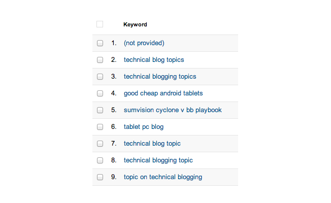 Adesso, man mano che accederanno le nuove visite, la parola chiave (not provided) sarà sostituita da parole chiave del tipo: