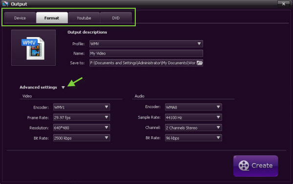 Quando tutto ti sembra OK, clicca sul pulsante “Crea” e poi scegli il formato di uscita per il filmato. Potrai scegliere fra decine di formati video, anche quelli per dispositivi mobili come iPhone, iPad, HTC, Samsung Galaxy, etc.