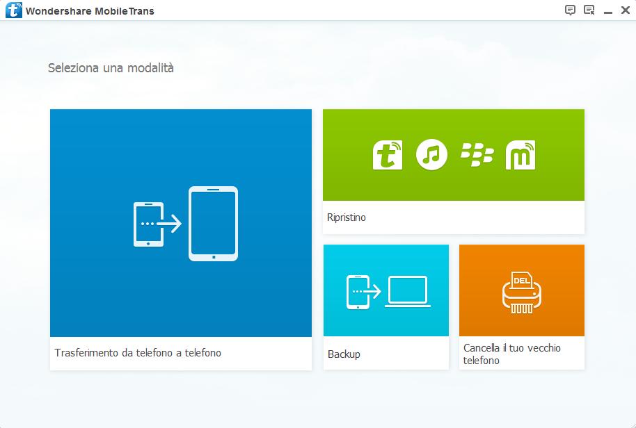Ecco la schermata principale di MobileTrans dopo il download e l’installazione:
